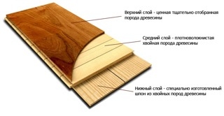 Найчастіше зустрічається тришарова версія паркетної дошки (буває ще двошарова та інженерна) завтовшки близько 14-15 мм.